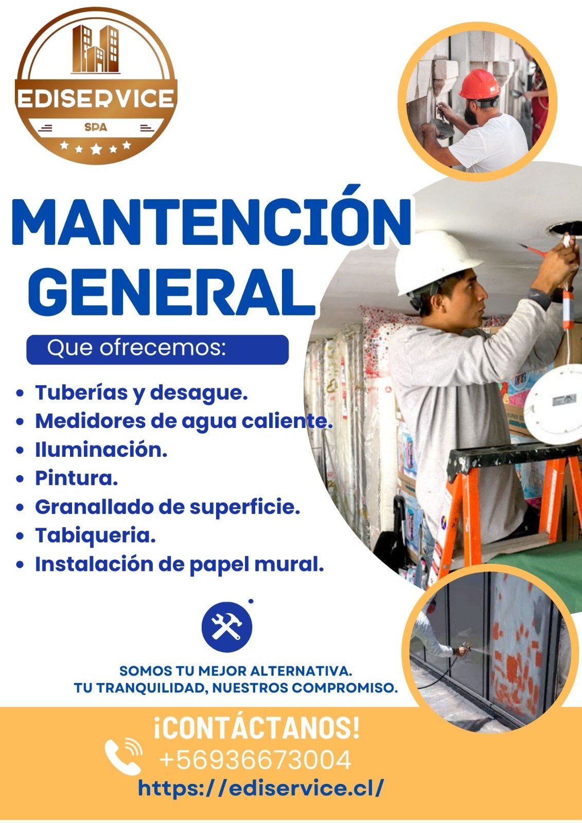 EdiService SpA ofrece un servicio de mantenimiento integral y correctivo, que abarca desde granallado y pintura hasta reparaciones de gasfitería e instalaciones de luminarias. Nuestro equipo de expertos se enfoca en maximizar la eficiencia y durabilidad, reduciendo costes futuros y optimizando sus sistemas.
